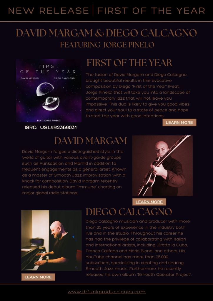The fusion of David Margam and Diego Calcagno brought beautiful results in this evocative composition by Diego “First of the Year” (Feat. Jorge Pinelo) that will take you into a landscape of contemporary jazz that will not leave you impassive. This duo is likely to give you good vibes and direct your soul to a state of peace and hope to start the year with good intentions.