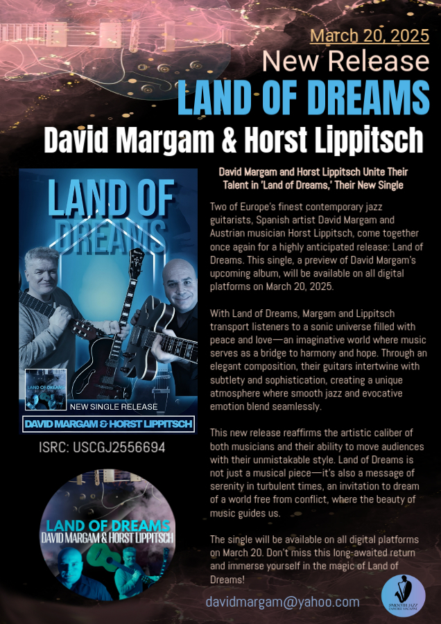 Two of Europeโs most distinguished contemporary jazz guitarists, David Margam (Spain) and Horst Lippitsch (Austria), reunite for a highly anticipated release: ‘Land of Dreams.’ This mesmerizing single, a preview of Margamโs upcoming album, available now on all digital platforms.